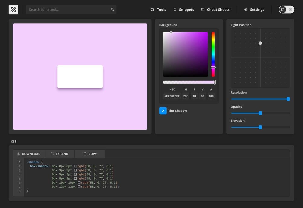 - CSS Shadow Generator: Generate perfect CSS shadows.